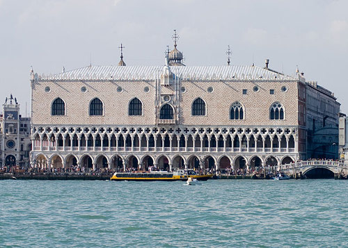 Situé sur la place Saint-Marc et bordant le Grand Canal, le Palais des Doges a été bâti dans les styles gothiques vénitien et byzantin à partir de 1340.