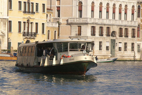 Le Vaporetto - embarcation municipale - et accessoirement les gondoles, sont le plus sûr moyen de déplacement et permettent du même coup de contempler ces chefs d'oeuvres architecturaux, en passant sous les célèbres ponts vénitiens qui enjambent le Grand Canal : pont du Rialto, pont de l'Académie... Mais d'autres canaux, plus étroits, également dignes d'intérêt, sont traversés par d'autres petits ponts pittoresques faisant le relais entre deux rangées de maisons colorées.