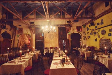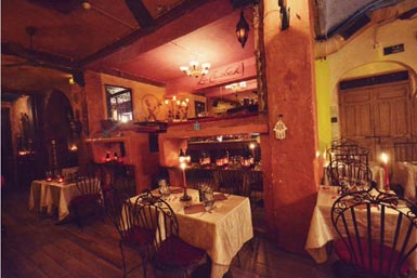 Tons rouges chaleureux et bar colonial en zinc pour ce restaurant-club servant une cuisine marocaine. Cette citadelle aux trois visages — restaurant, bar et club — propose un univers dédié à la détente et à la fête.