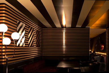 A l’étage, des petits salons privés un peu comme une suite d’hôtel avec une salle de bains et son immense baignoire. Il y a aussi un studio de musique où tous les instruments sont déjà pluggés, prêts à l’emploi. Au sous-sol, une loge-boudoir de cocotte, accessible uniquement si on possède le code. Le design du mobilier a été réalisé par un jeune designer français, Raphael Bertrand.