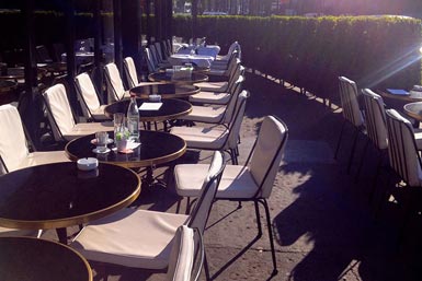 A la carte : grands classiques (fruits de mer, filet de boeuf sauce béarnaise, millefeuille à la vanille) et recettes originales (petits nems vietnamiens, gambas poêlées au chou croquant et riz au jasmin). 330 couverts.