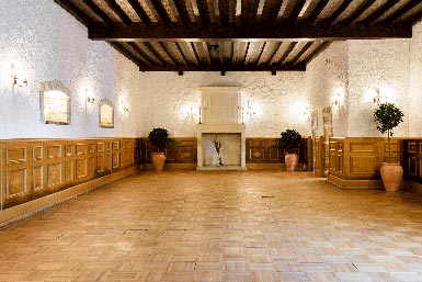 380 places assises, 4 salles : Grande Salle Louis XIII de 330 m² pour 280 places assises (cheminée et mezzanine (+ 40 m²) et sa suite de 150 places assises. Salle de la Cheminée (suite de la Grande Salle Louis XIII) de 150 places assises. Salle Rochechouart de 80 m² pour 120 places assises. Salle des Gardes XIIe siècle de 120 m² pour 160 places assises, et son vestiaire de 40 m². Une cour terrasse de 900 m² peut être aménagée (tente de réception). Une ambiance terrasse et canapés pour vos moments de détente. Éclairage nocturne du site. Vastes cuisines équipées, cave à vins et Parking de 350 places.