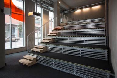 Le Playground, salle polyvalente dédiée à l'entraînement et à l'éducation (conférences éducatives pour les adhérents, formations), permet une exploitation modulable de l'espace. Cette tribune est un agrès sportif transformable en amphithéâtre (capacité 50 places) complété par un équipement audiovisuel complet. Un espace de 140 m² à la lumière du jour, climatisé et entièrement équipé – Accès indépendant au RDC sur rue accessible aux personnes à mobilité réduite / écran (4x3 m) + vidéoprojecteur / sonorisation (micro casque HF + micro filaire, lecteurs CD et DVD) / accès internet + TV.