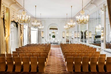 Salon d’Honneur (jusqu’à 1200 p.) / Trianon (jusqu’à 300 p.) / Empire (150 p.) / Louis XVI (150 p.) / Versailles (100 p.) / Catelan (80 p.) / Lenôtre (70 p.) / Caravelle (40 p.) / Marie Antoinette (30 p.) / Médicis (12 p.) / Roqueplan (12 p.) / Eugénie (12 p.).