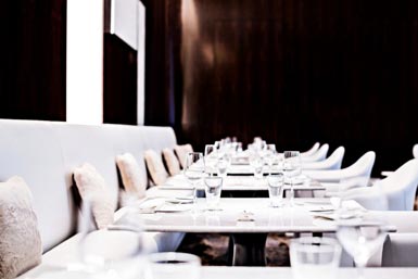 Dans un décor de marbre, de cuir blanc, de bois et de lumière, autour de la cuisine ouverte cerclée de verre de Murano, le moindre détail a été choisi ou créé sur mesure pour mettre en scène sans grandiloquence les acteurs principaux de ces pièces gastronomiques.