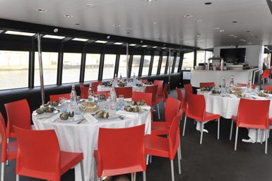 Les espaces à votre disposition : Le Salon des Vedettes, un salon flottant de 200 m² entièrement vitré dont 50 m² en mezzanine. Son style épuré et moderne, avec son bar et son salon lounge en mezzanine est idéal pour personnaliser votre réception. Son parquet apporte une touche d’élégance et de sobriété. Repas assis jusqu’à 120 personnes, cocktails jusqu’à 250 personnes et séminaires jusqu’à 100 personnes. A noter que la compagnie n’impose pas de traiteur. Cependant, le choix d’un traiteur agréé par les Vedettes de Paris est une garantie de qualité. Leurs prestataires ont adhéré à la Charte Iso 14001 et connaissent parfaitement le lieu de réception. Les bateaux jumeaux Paris Iéna et Paris Trocadéro avec notamment un pont supérieur découvert, un salon panoramique et un bar, peuvent accueillir jusqu’à 70 personnes en cocktail. Trois espaces “nus” ou en offre packagée avec traiteur, décoration, sono sont proposés selon vos besoins. Repas assis jusqu’à 40 personnes, cocktails jusqu’à 70 personnes et séminaires jusqu’à 20 personnes. Enfin, Le Paris Etoile allie confort, modularité et fonctionnalité, et dispose des avancées technologiques les plus récentes. En configuration réception, il peut accueillir 120 invités en cocktail et 60 p. en dîner assis. Grâce à sa motorisation innovante, le Paris Etoile économise jusqu’à 30% d’énergie par rapport aux versions précédentes et est extrêmement silencieux. Sa configuration est parfaitement adaptée aux déjeuner et dîner croisière dans un cadre intime. Repas assis jusqu’à 60 personnes, cocktails jusqu’à 120 personnes et séminaires jusqu’à 80 personnes.