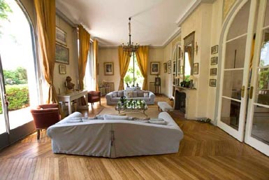 En bordure du Bois de Boulogne, le domaine de la Vigne de Paris-Bagatelle (400 ceps de vigne) propose son hôtel particulier, soit 240 m² d'espaces communicants dont 160 m² de plain-pied ouvrant sur une terrasse surplombant le jardin (70 m²).