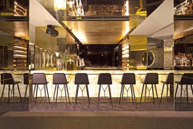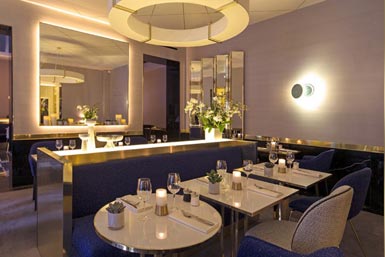 Une architecture imposante, une décoration Années 20... Miroirs, soies, tissus couture et différents matériaux bruts tels que le marbre, l’onyx, la céramique, dessinent un ensemble flamboyant. Au rez-de-chaussée, le bois, le bleu, et l’or offrent élégance à un premier salon de réception. Un escalier en marbre vous mènera jusqu’au restaurant du niveau inférieur. Comptoir central, tables, banquettes savamment agencées et alcôves font agrémentent cet espace.