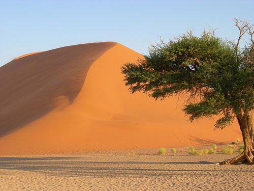 Dans le désert du Namib (qui est le plus ancien désert du monde, datant de 80 millions d'années), entre Walvis Bay et Lüderitz, dans le parc de Namib-Naukluft se trouvent les fameuses dunes de Sossusvlei.