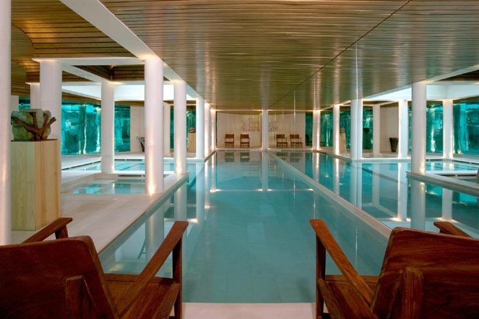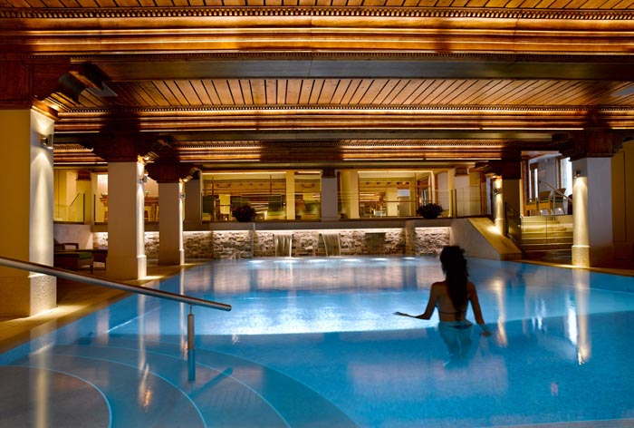 • Dans l'espace détente de 850m², le spa "Valmont pour les Airelles" avec ses mosaïques, sauna, hammam, piscine, jacuzzi, salle de gymnastique, bain à remous intérieur et extérieur, grotte à neige.
