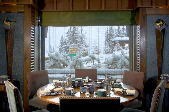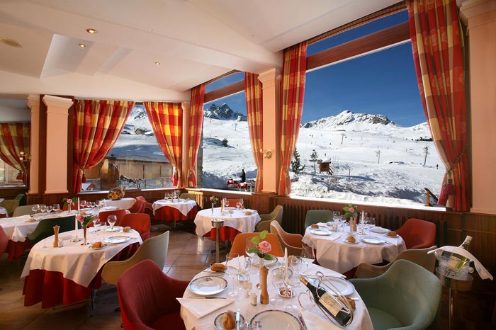 • Le restaurant Pierre Gagnaire pour les Airelles propose une cuisine traditionnelle bourgeoise, dans un cadre inspiré par Sissi l'impératrice. Pour le déjeuner sur la terrasse, buffet et rôtisserie ; Coin savoyard avec spécialités de fromages de la région ; restaurant italien.